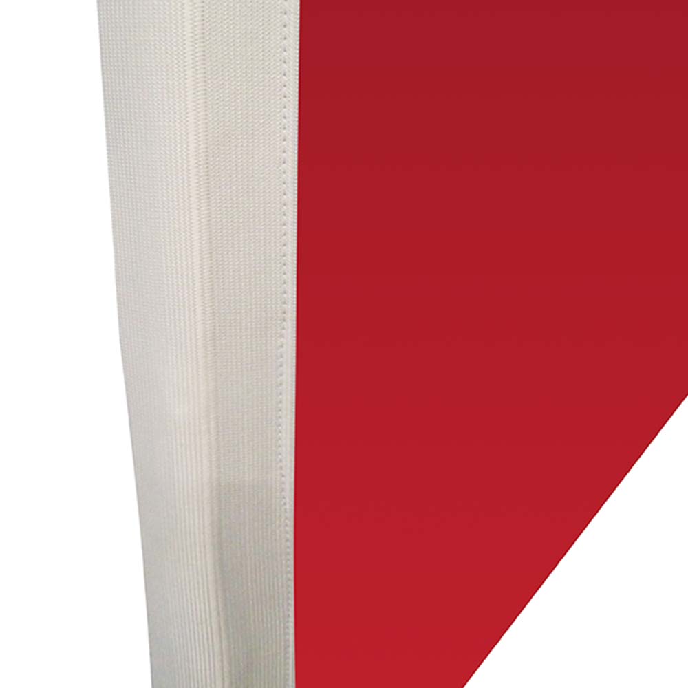 Die Fahne besteht aus 110 g/m² Fahnenstoff bei der das Besatzband als Gummiband in schwarz, weiß oder als bedruckter Stoffsaum erhältlich ist. Die Fahne ist 4/0-farbig, einseitig bedruckbar und kann individuell bedruckt werden.